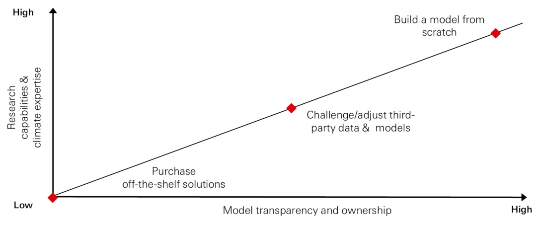 That said, physical climate risk data and modelling do not have to be an all-or-nothing endeavour. Despite the complexities involved, there is considerable flexibility available to asset managers and their asset owner clients. They can choose to address all or some use cases through off-the-shelf solutions while developing in-house models to meet other specific needs.